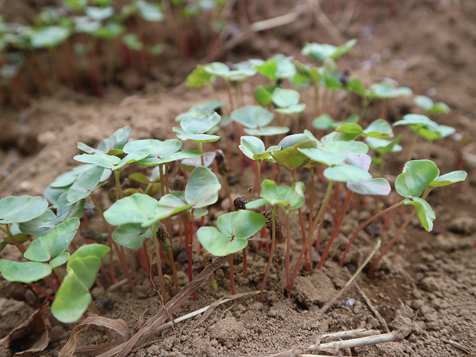 皆さんで植えたそばの種から芽が でました!